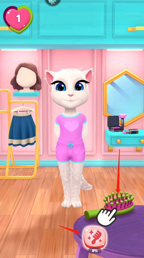 5、接下来就是梳妆打扮时间啦,点击梳子给猫猫把毛发梳顺吧。