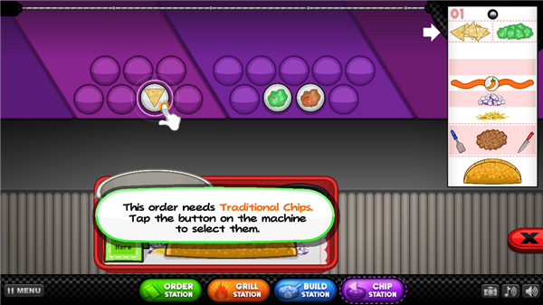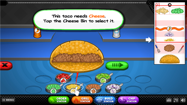 11、玩家只需左右滑动,即可撒上配菜,最后,所以配菜上完后,点击绿色方向键;
