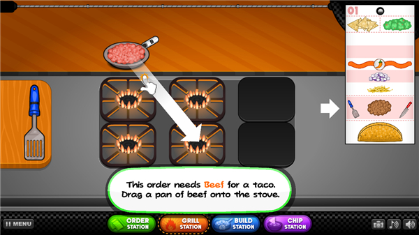 7、左上角是客人要求放的食材,我们点击锅将他拖动到灶台进行烹饪;