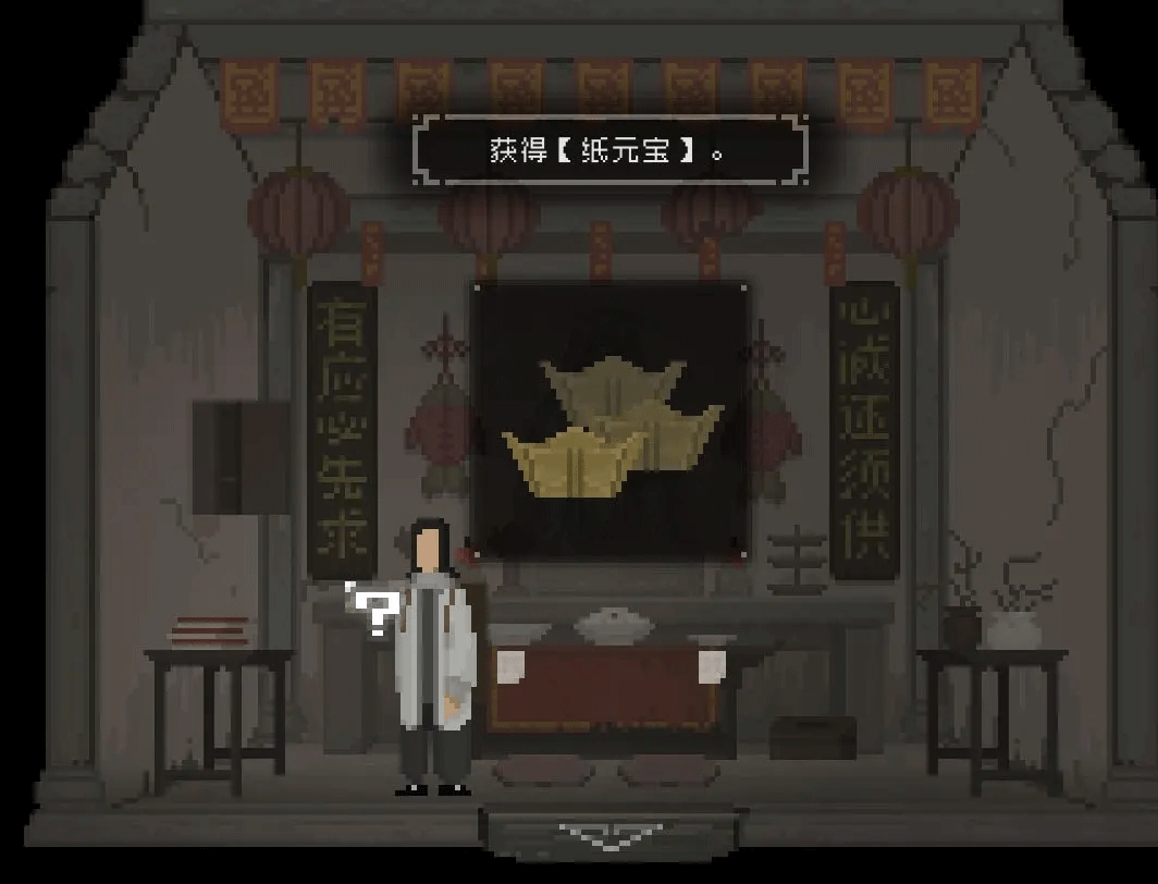 根据供桌上的白纸,将【纸元宝】放在左边的碟子里