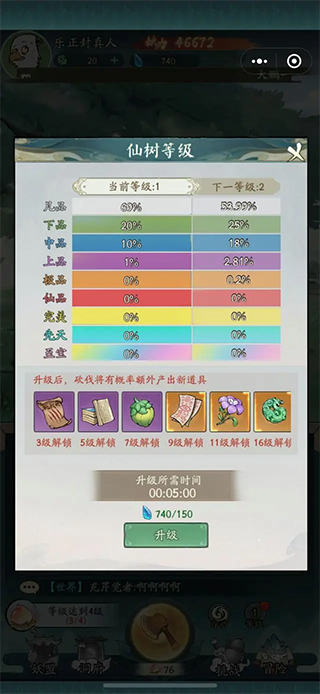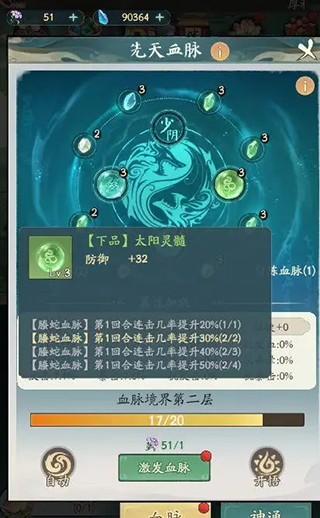 消耗仙草激发角色属性,提升血脉境界等级,便可能获得更高等级的灵髓;