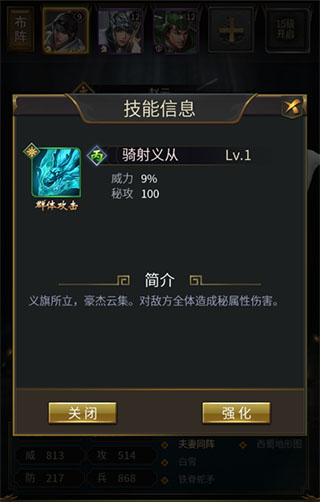 作为一款卡牌培养游戏,武将数值也是核心培养方向的重中之重,而在游戏里开拍的四维数值分为兵力、攻击、防御、威力。中间两种很容易理解,即字面的意思,而兵力可理解为该武将的血量,威力则可理解为法力(影响技能威力的数值)。