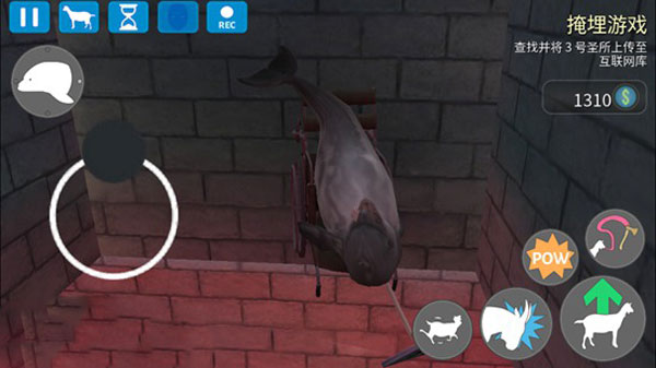 13、海豚可以直接“飞檐走壁”,它的轮椅可以闹闹吸在墙壁上,哪怕是倒吊着走都如履平地,所以我们直接控制海豚沿着墙壁向上爬即可。