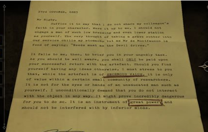 鬼气森森的信件,最后给了大家一句大实话,(我不是这所房子里唯一的鬼魂。)真是太吓人了。读完信件会得到一个奇怪但是很重要的东西,眼镜。