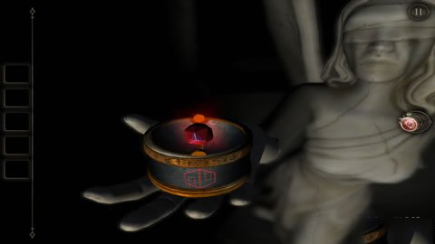 找齐三个符号之后镜头转到女神像的手上,他的手上有个机关盒打开里面有一枚宝石,取下来。