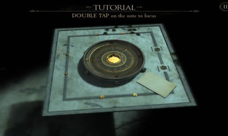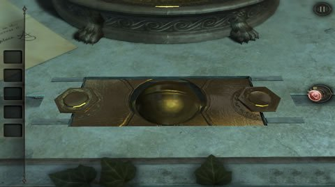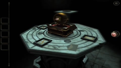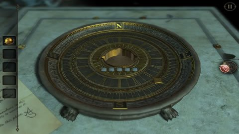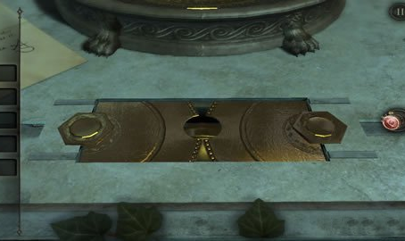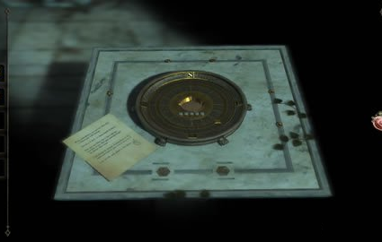 获得到圆球后,我们在回到桌子上,来到桌子的圆盘处,将刚获得的圆球放置圆盘中间,我们会发现如图所示的样子。这是我们需要密码才可以打开接下来的机关。