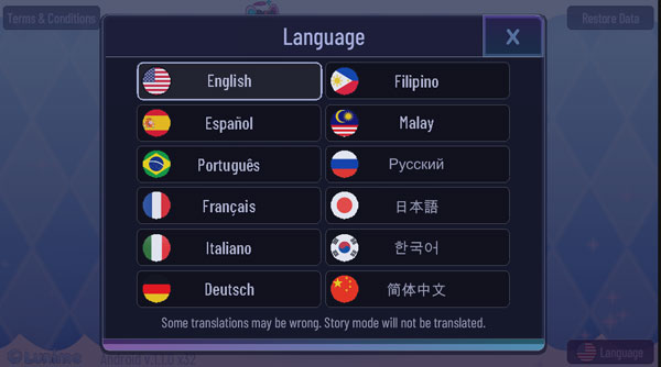 1、在运行游戏,点击language;
