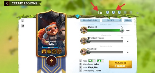 Legion Presets 可以为您节省大量时间,因为您将能够准备多支具有不同部队和指挥官组合的军队,并保存它们以备将来使用。例如,你可以创建一个拥有强大PvP指挥官的军团,有或没有副手,以及最适合这种情况的最高级别单位。或者,一个专门为采集而生的军团,英雄拥有采集天赋和运输单位。