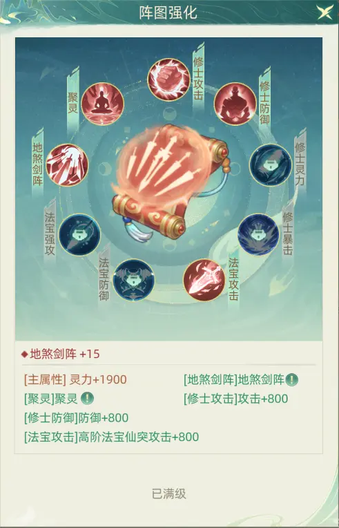 1个阵法技能(如人皇剑阵、八卦法阵等)