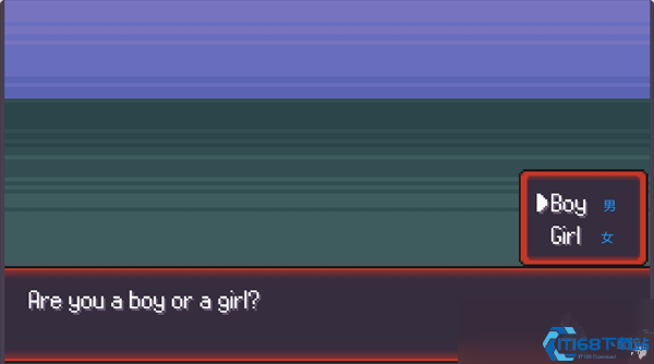 2、登录后,一直按“A键”确认对话,PC端可以按回车键确认,使用上下键选择性别“boy”男生“girl”女生;