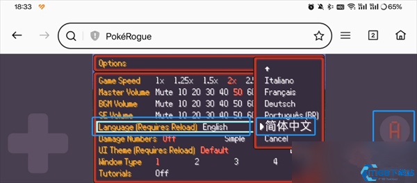 5、上下键选中“language[requires reload]”,“A键”确认,然后上下找到“简体中文”,继续A键确认;