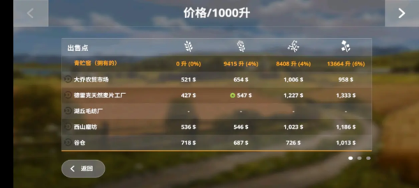 这里要说一下,作物的价格会进行变化。通过对比我们可以选择谷仓进行出售小麦。有时候会有大量订单出现影响价格,如果不是急着用钱,我们可以先存起来等价格高了再买。