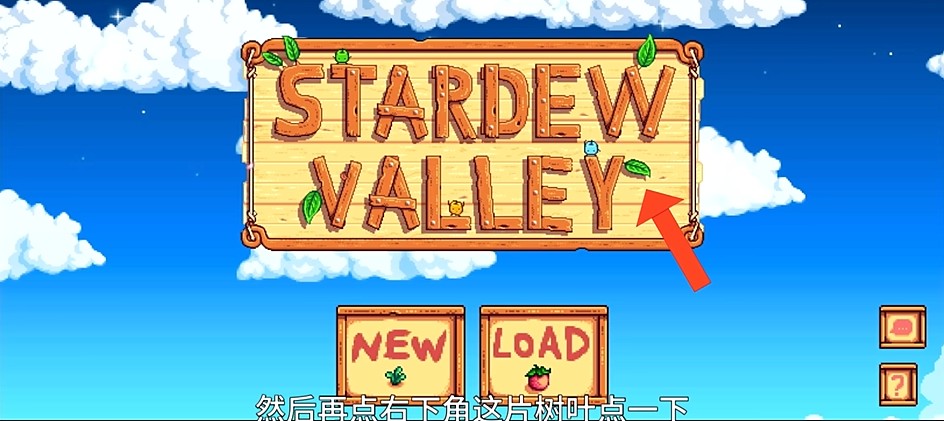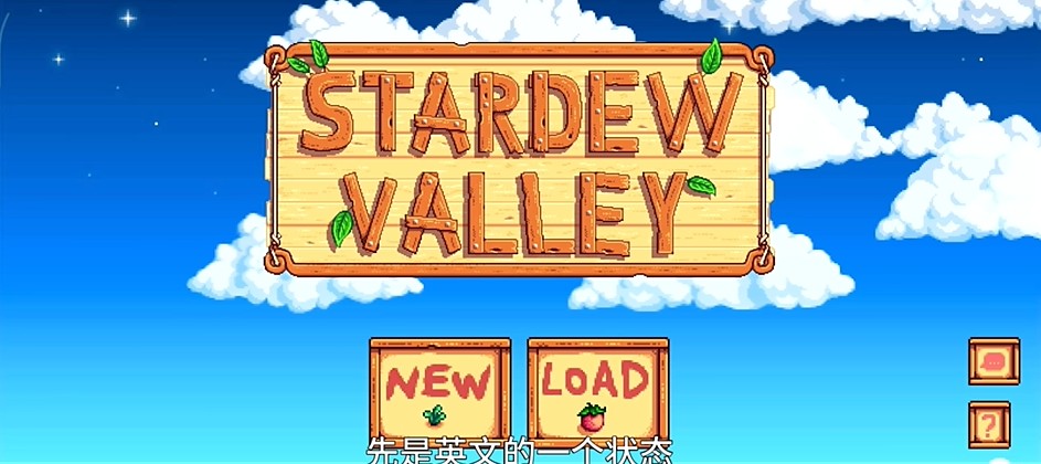 1、从本站下载安装星露谷物语,进去是英文,点击下图图示位置