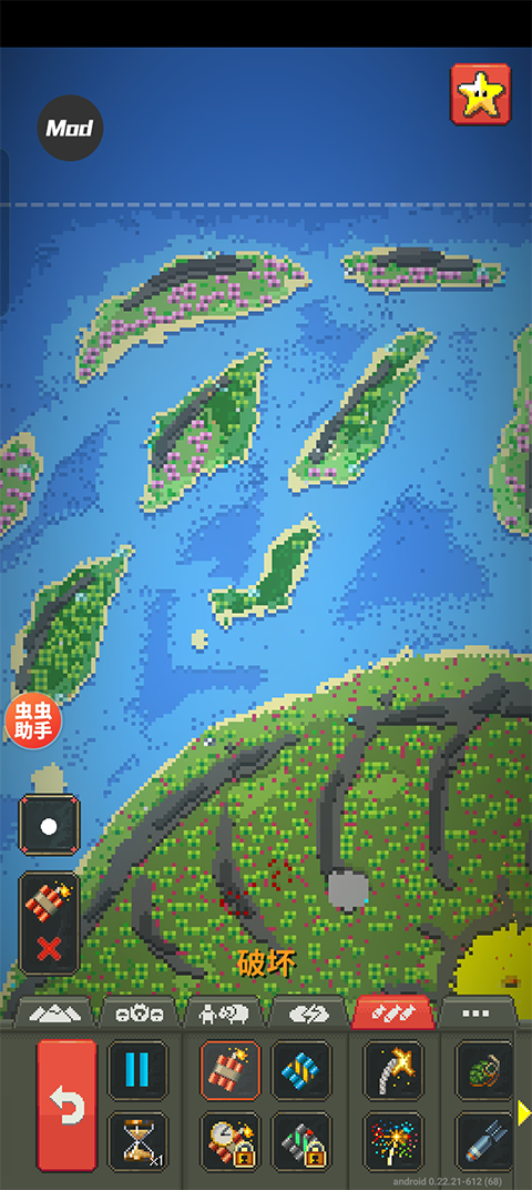 5、毁灭玩法:对于毁灭方面的玩法,它也是有着较多的可玩性。正常世界中的导弹、核弹、沙皇炸弹...一一不少的搬进了其中,威力较大,可对陆地上的文明及地形进行毁灭性的打击。另外,虚构的武器也加入了进来,例如:从天而降的保龄球、抛下即消灭一半生物的硬币、贯穿天地的炽热射线,这些都对游戏提高了趣味性。