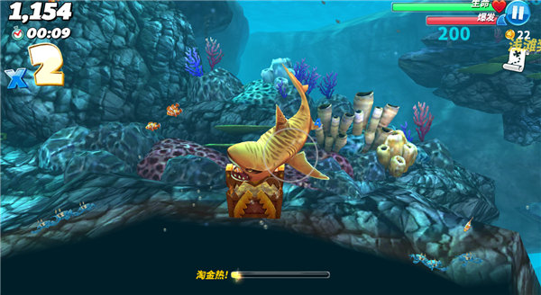 尽量捕捉尽可能多的食物,以提高鲨鱼的等级。升级后,您将获得更多的生命值、速度和咬力。