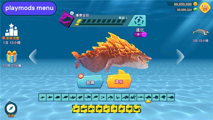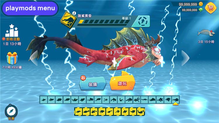 3、迎来了全新的玩法和全新的鲨鱼,玩家对战模式和大家都十分期待的尼斯湖水怪。