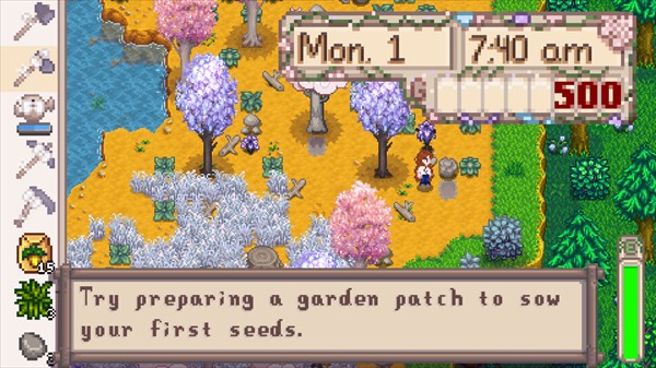 4、玩家们需要根据任务要求离开房间,然后利用各种不同的工具来清理外面的杂草、石头和树木。