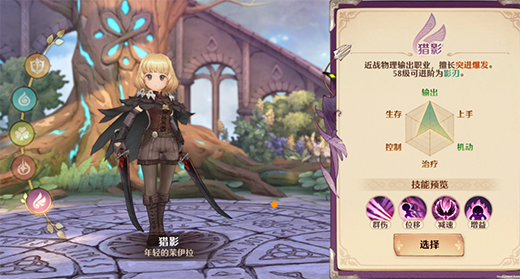 猎影是近战物理输出职业,职业定位是连招爆发,在团队内的定位是输出,输出能力和机动性都很强,并且相对于其他职业,猎影对高格挡敌人的伤害效果会更好。猎影的战力能力强劲,但需要通过技能衔接才能有效发挥他的特长,技能衔接不顺畅会使他的输出能力大打折扣,如果勇者对自己的操作有信心,并且享受技能衔接(combo连击)打出高伤害的快感,可以选择猎影作为自己的职业。