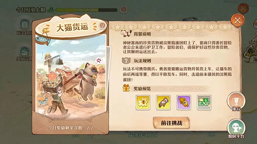 ? 大猫货运、暴走浣熊(进骑士团后开启,每日多时段刷新)、深渊斗技场(第5日开启,38级可参与)活动可得大量卡牌!