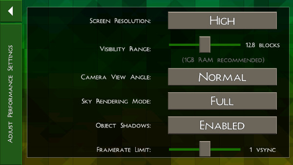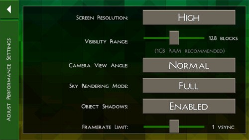 在 "settings"(设置)菜单的 "performance"(性能)选项中,玩家可根据设备配置自定义画质参数。