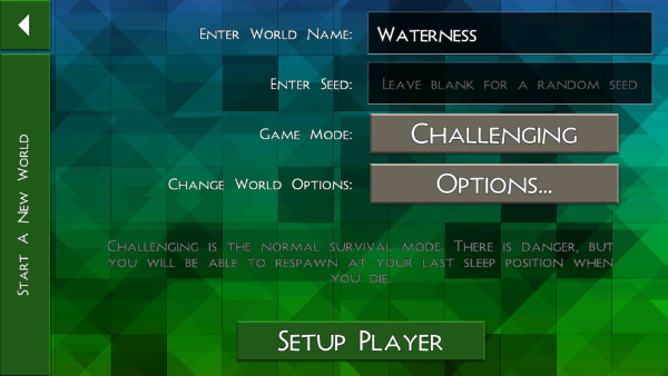 4、点击“new world”后,我们需要对创建世界,进行自定义的设置,设置完成后点击“setup player”