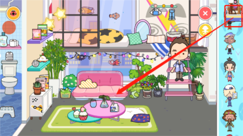 6、回到家后,再将人物拖出来就可以用家具布置家里了