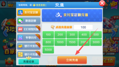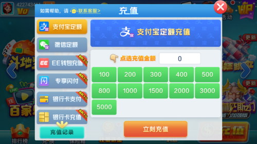 平台接入支付宝、微信支付、云闪付及主流银行卡通道,充值入口位于游戏大厅右上角【充值】按钮,界面简洁无诱导,金额档位清晰标注(10元至5000元共8档);首次充值用户自动解锁「新人尊享礼包」,含5000金币+专属头像框+3张房卡;所有订单实时到账,余额变动即时推送通知,历史账单可查可导出;客服通道7×12小时在线,充值异常3分钟内人工响应,资金安全全程可追溯。
