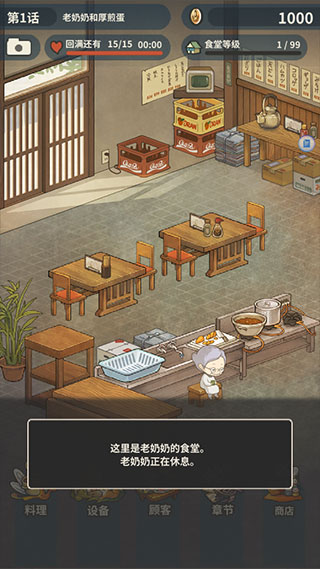 在游戏中老奶奶为形形色色的食客制作料理,获得金币。单一商品重复制作能够提升料理等级从而解锁新的料理。