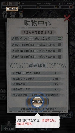 2. 组建幸存者小队,前往废墟探索并收集稀缺物资。