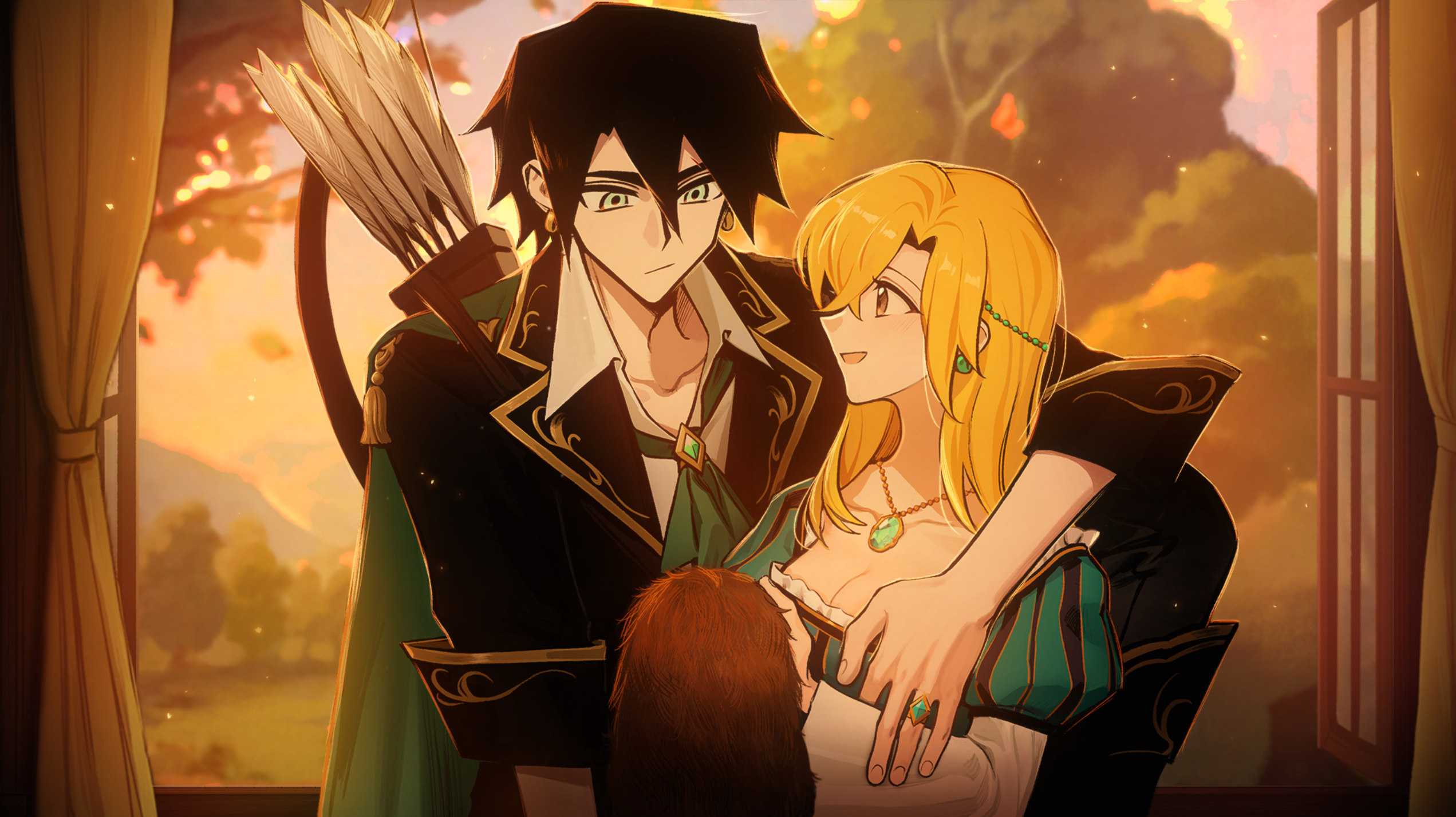 与肯尼斯结婚。12.1%的成就达成率。是不善言辞的小王子,嘿嘿。在一岁时被绑架丢弃在了魔物森林,在我们老婆鸮姬的帮助下才得以重返火山国,年幼时的这段经历导致了他现在的性格。后来在女儿的帮助下也在不断学习成长,得以成为贤明的国王。