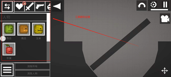 4、点击左上角四宫格图标,即时调出道具轮盘——攻击型、辅助型、环境改造型工具一触即达。