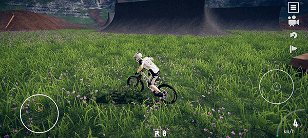 1、屏幕左下角虚拟摇杆用于实时控制前轮转向角度,微幅摆动可实现细腻过弯,大幅偏转适配急刹甩尾