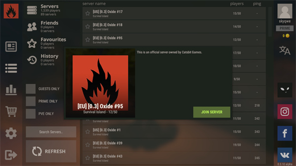 1、打开腐蚀Rust手游,游戏需加速器启动,选择一个房间。