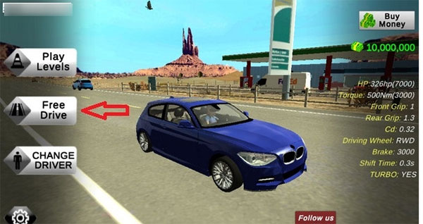 主界面点击【自由驾驶】入口,进入开放世界沙盒环境;
