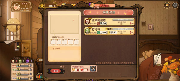 每回合可安排5项活动,课程匹配度越高,学习效率越显著。