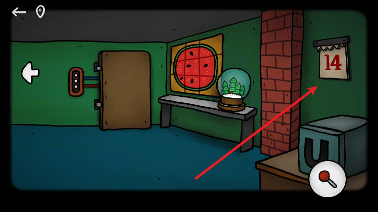 3、移步至右侧起居室,逐页撕下墙面悬挂的日历,最后一张背面露出第二根操作杆