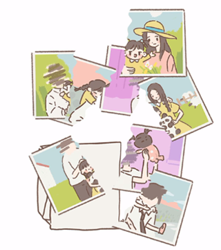 5、拼合相片时触发手绘动画,童年涂鸦浮现荧光效果,点击可放大查看隐藏细节;