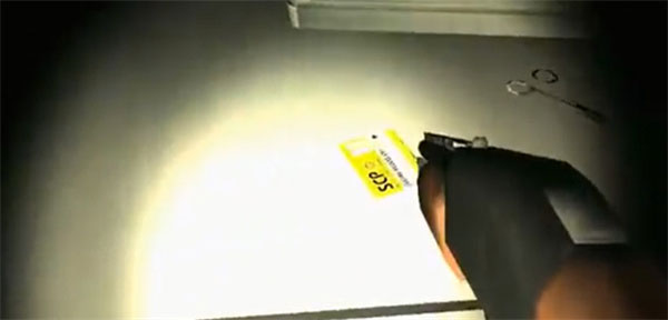 2、固定刷新点:右侧木椅坐垫下压着手电筒,开启后视野范围扩大但电量持续消耗,需合理规划照明路径。