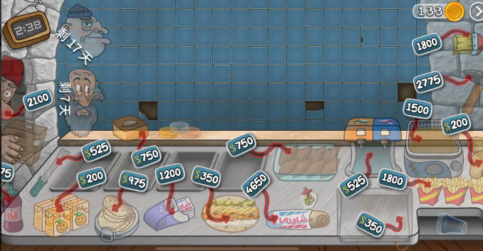 2、最后攒5万金币的时候,按照顾客要求的配料来,不熟练的话很浪费时间,沙威玛里面都是需要烤肉的,可以所有都只加烤肉,这样节省出来的时间,比按照顾客放配料的金币多很多,大概一局可以到4500。