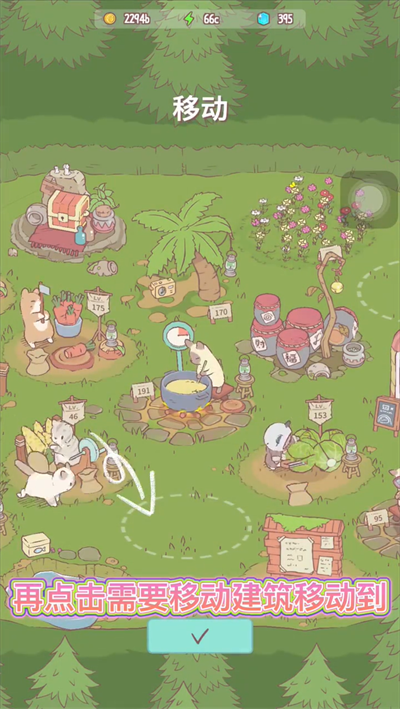 2、点击空地放置基础设施:灶台、猫窝、储物箱……用最朴素的砖瓦,搭起毛孩子的第一个家;
