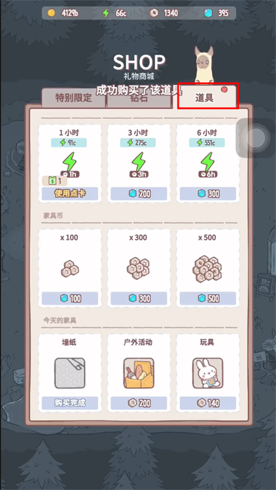 2、切换至「道具商城」页签,向下滑动至底部「家居专区」,即可浏览最新上架款;