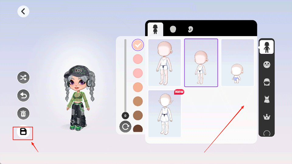 2、前往服饰橱窗系统,试穿不同系列套装(如森系手作风、霓虹赛博系、水墨国韵款),完成造型后点击“存档至角色库”,再通过左上角返回键退出编辑页。