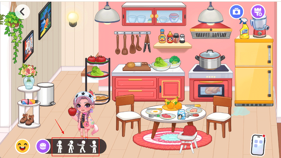 6、长按角色可触发位置微调,将其安放于沙发、秋千或窗台等互动点位;投喂食物后,点击动作栏选择“细嚼”、“惊喜舔舐”或“假装嫌弃”等拟真反馈,增强沉浸感。