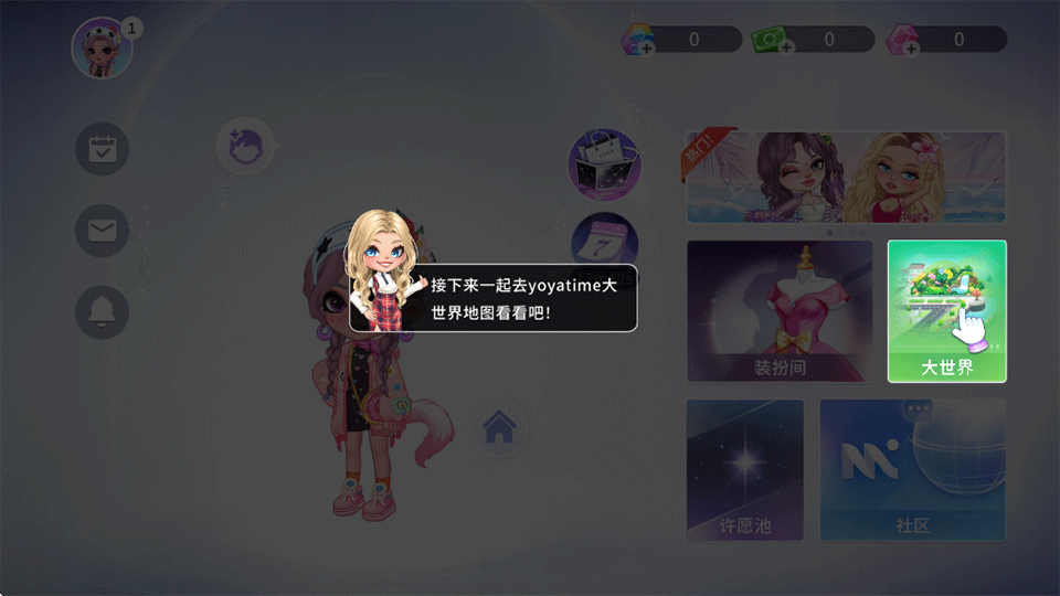 3、点击主界面中央的“大世界”入口,进入开放地图,开启自由漫游与社交探索模式。