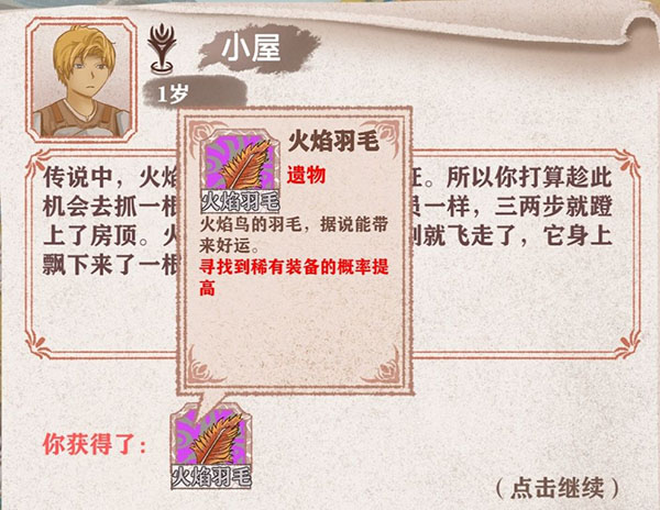 2、天降陨石:说服父亲出售,家境+3;若失败,可转为“陨铁碎片”用于锻造强化,另辟成长路径。