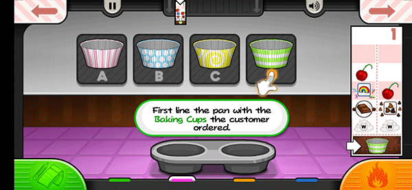 1、进入游戏后,首先接收客户的订单,然后切换到面糊点开始打开纸杯蛋糕
