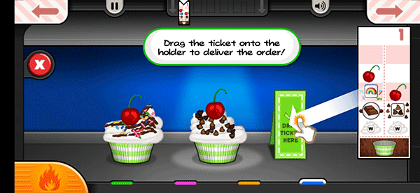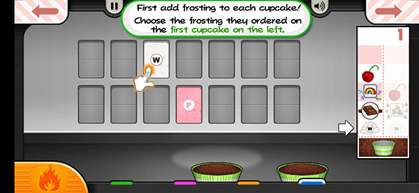 7、然后切换到构建站,按照右边客户订单上的需求为纸杯蛋糕添加装饰