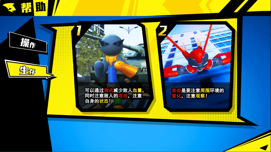 3、生存不仅是血条管理——需实时观察敌人攻击前摇、环境可交互元素(如油桶、玻璃幕墙、吊车钩索),善用场景制造连锁反击。