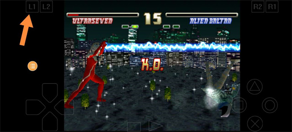 2、返回游戏,选择初代奥特曼出战,在对战中持续按压L1键释放光线技,以最快速度终结对手。