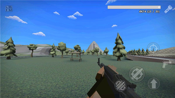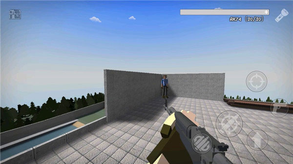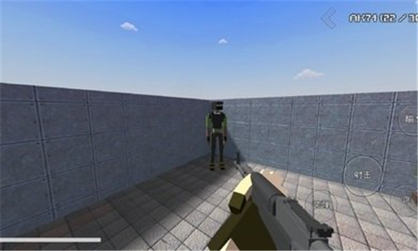 3、进入场景后,屏幕右侧集成核心操作按钮:装填、开火、精准瞄准、跳跃;角色可自由环视、攀爬、蹲伏,环境互动响应迅速;